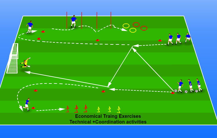 Running coordination, obstacle courses, or a combination of technical exercises integrated within the coordination exercises helps keep players motivated.
